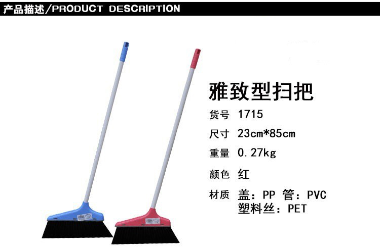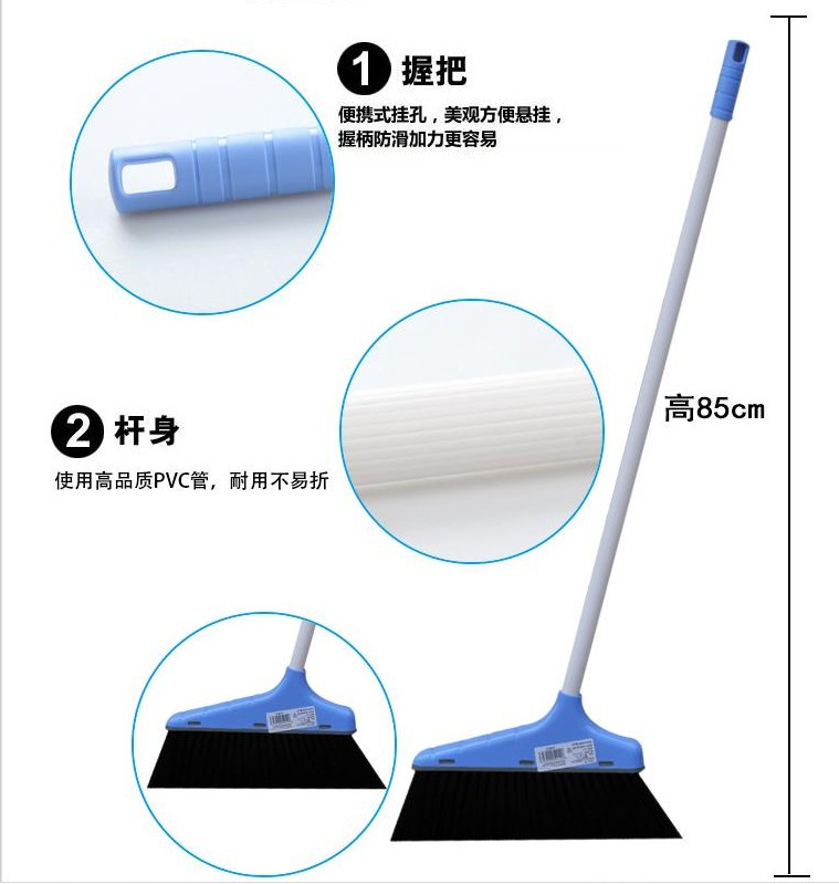 3 扫把杆身采用高品质PVC管,具有良好的耐久性和抗折性能,确保在频繁使用中不易损坏。