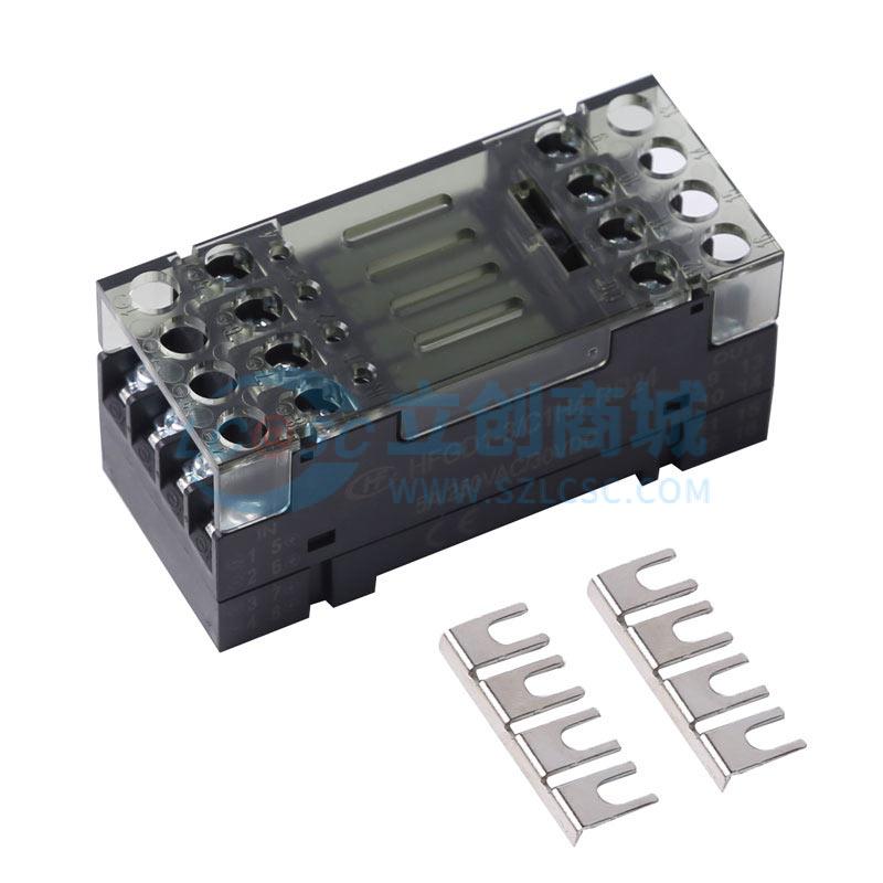 该继电器模组为HF(宏发)品牌HFGD1-3/C1H4-RD24型号,属于4路常开型继电器模组,宽度仅32.1mm,适合在空间紧凑的工业控制柜中进行密集安装