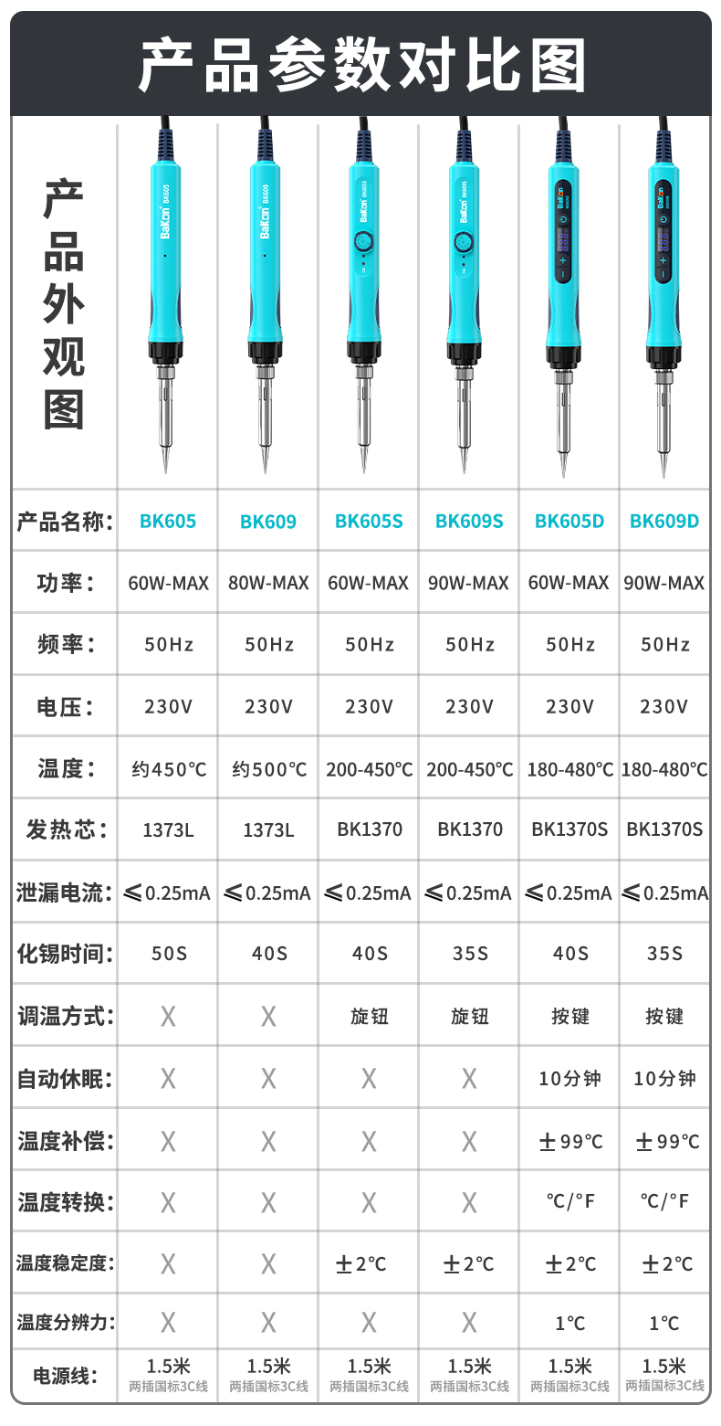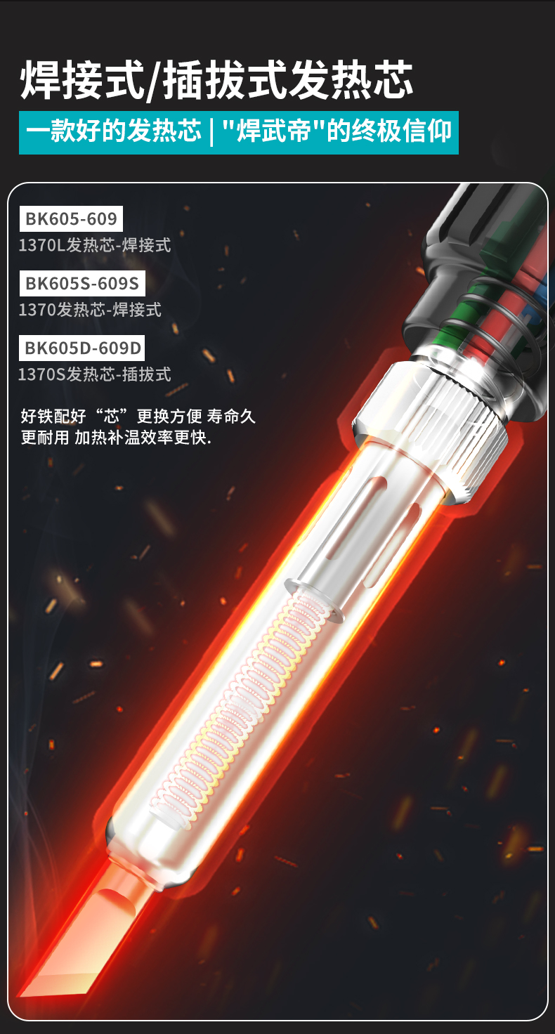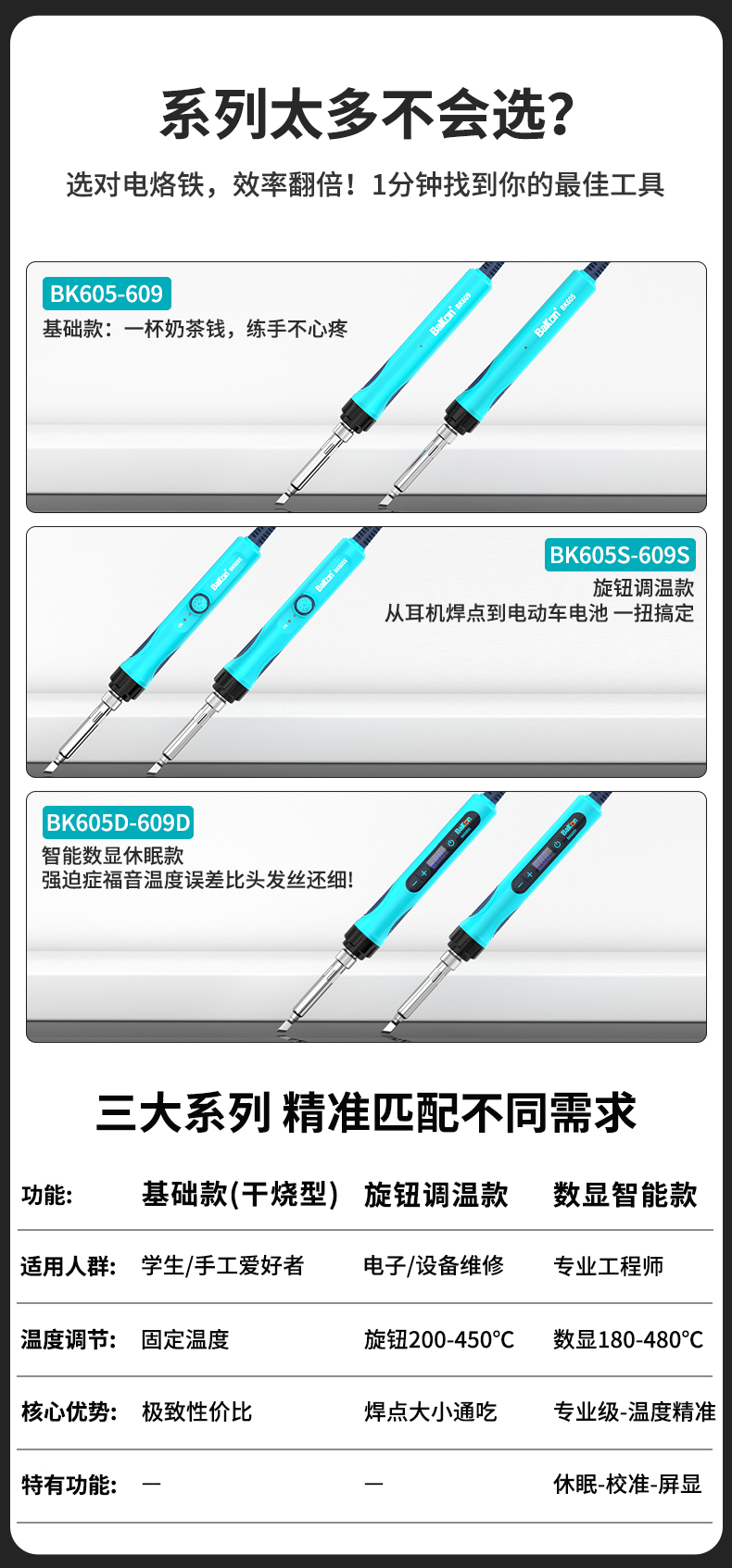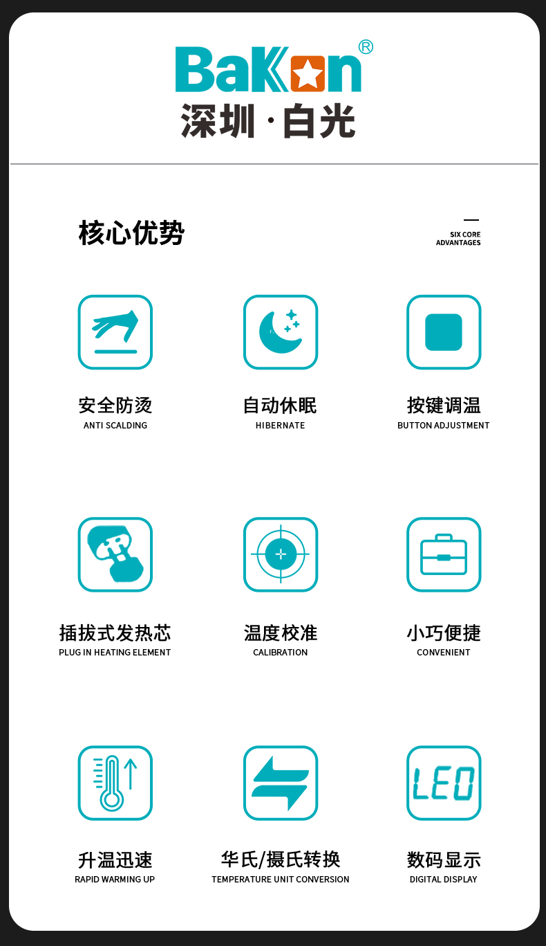 Bakon(白光)60W电烙铁家用小型维修数显控温单支电烙铁BK605D,9件套