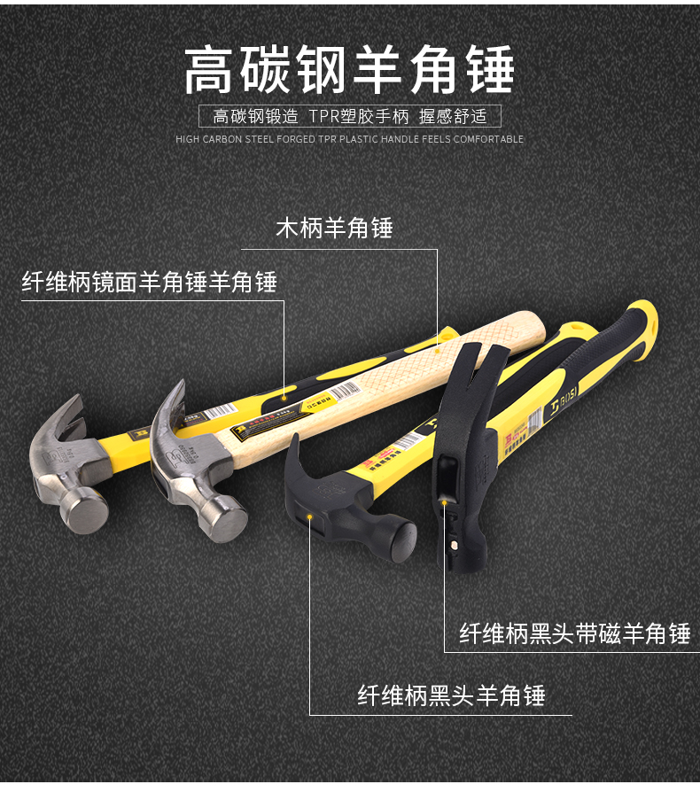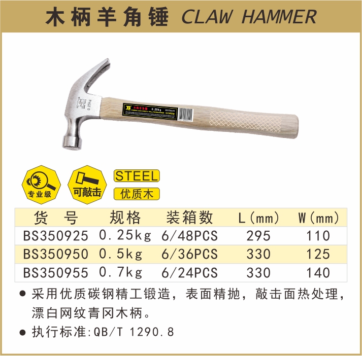 BOSI(波斯),木柄羊角锤起钉铁锤子装修榔头锤子安装锤,BS350955(0.7KG)
