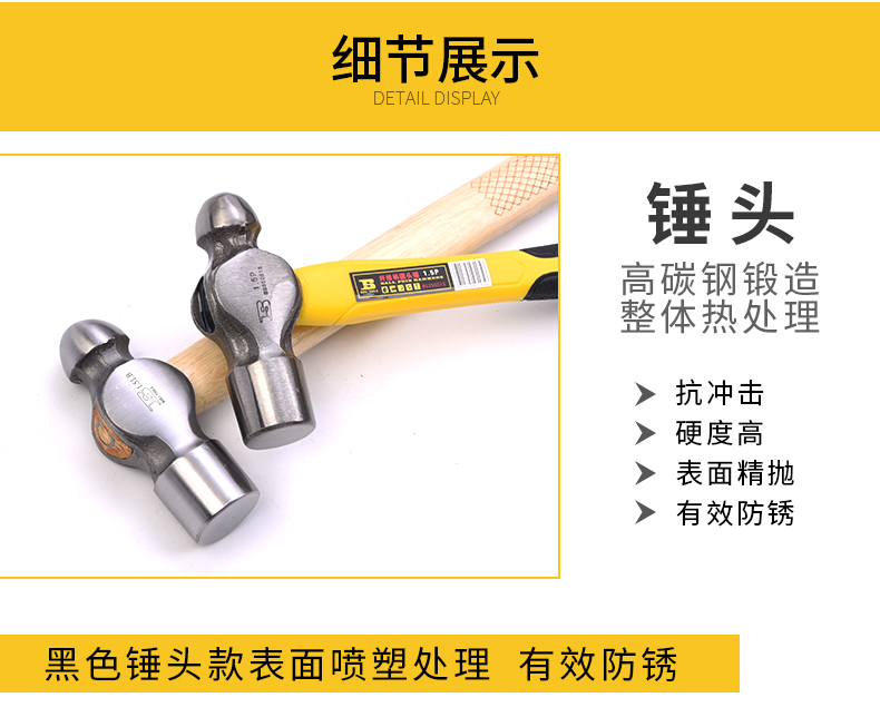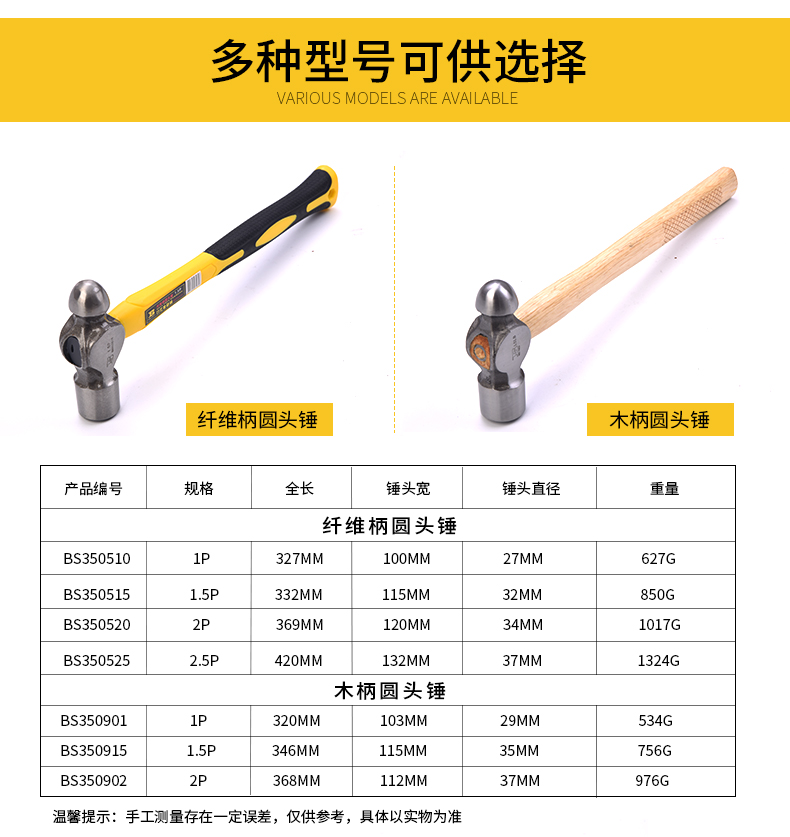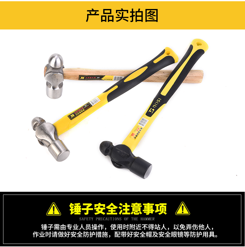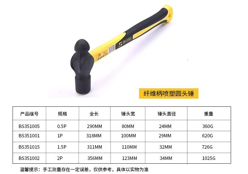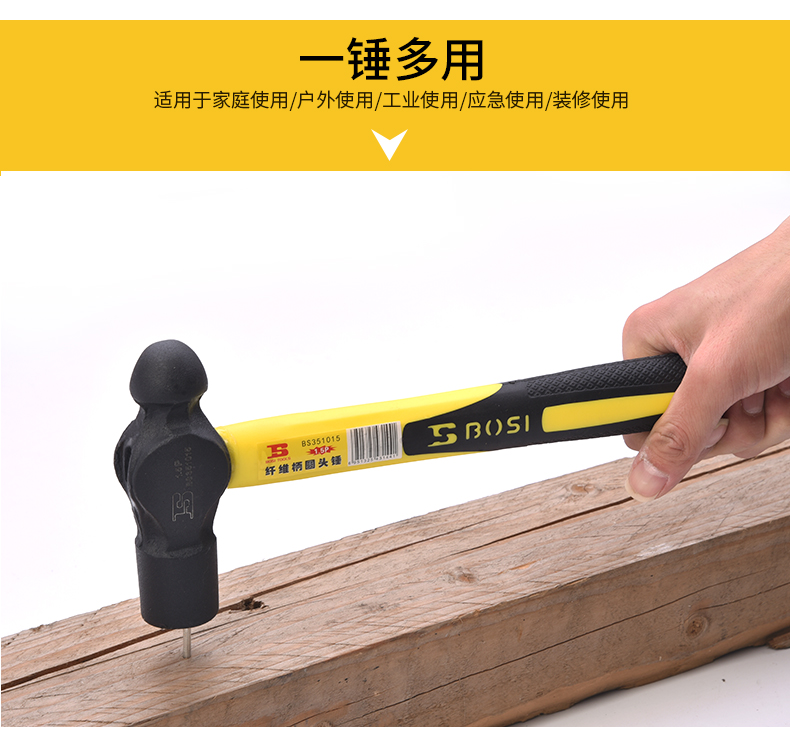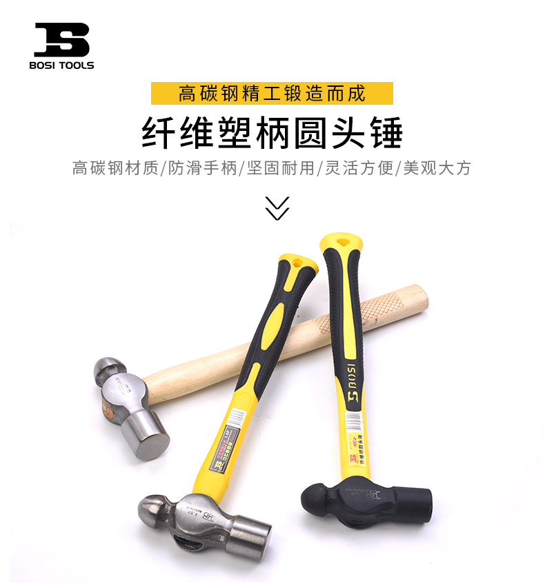 BOSI(波斯),2.5磅纤维柄圆头锤,锤锻打安装锤子钢锤核桃锤榔头锤子,BS350525