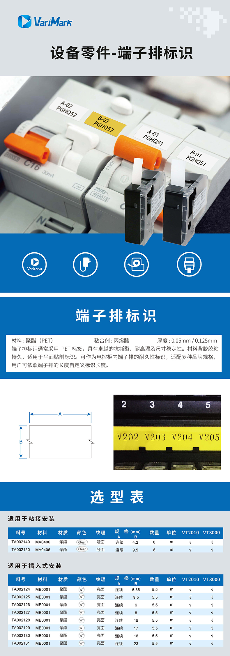 VariMark/威码VT2010/VT3000标签打印机端子排标识电力控制接线端标识防水防油耐磨抗划抗撕裂插条无胶标识 TA002131 23mmX5.5M-白底黑字