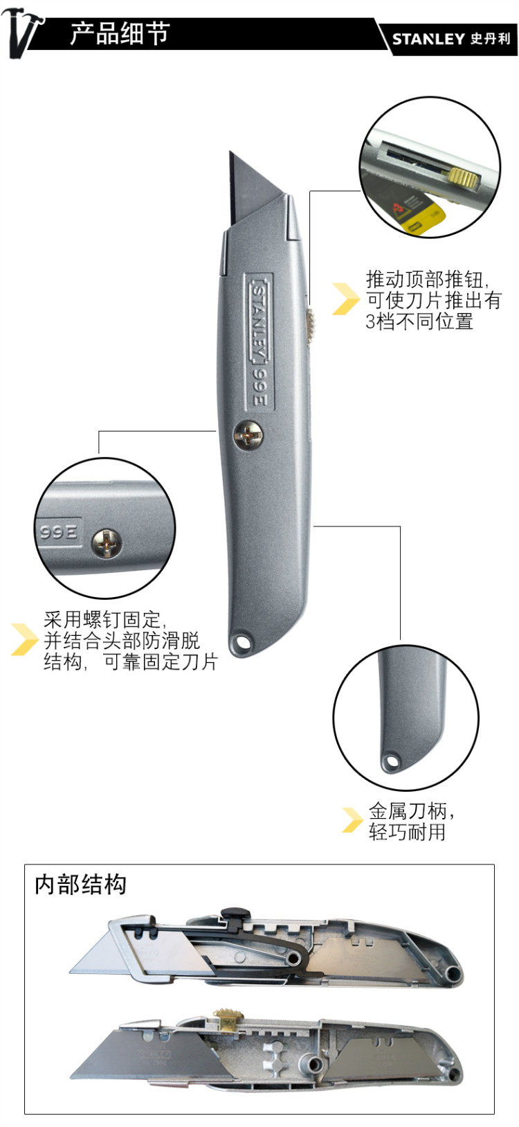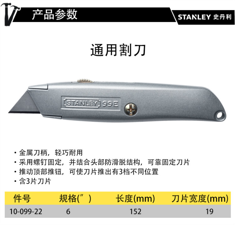 STANLEY(史丹利),19MM通用割刀美工刀裁纸刀壁纸刀墙纸刀带刀片实用割刀(6英寸),10-099-22
