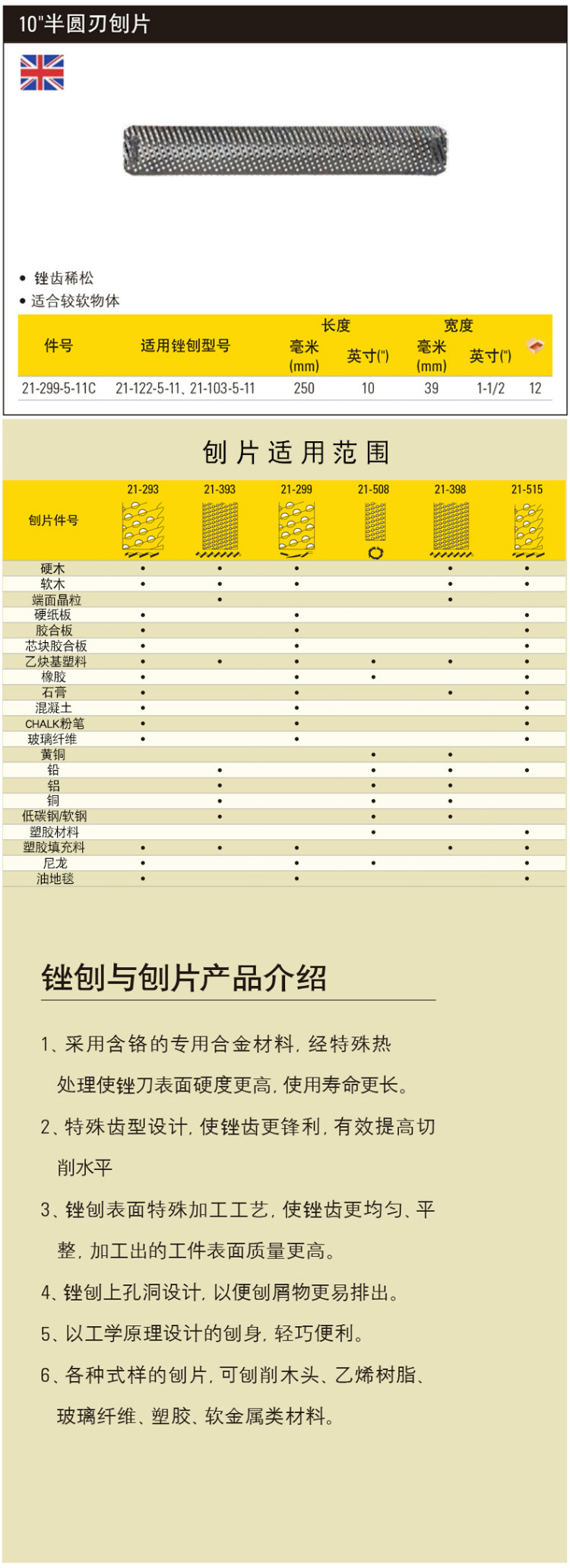 STANLEY(史丹利),10寸半圆刃刨片刨刀刨削木材塑胶软锉刨金属锉刨木工刨子刀片,21-299-5-11C