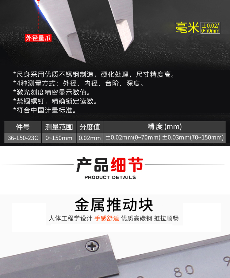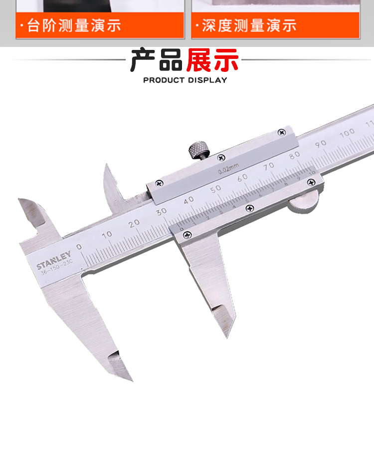 STANLEY(史丹利),机械游标卡尺0-150mm 工业级油标线卡尺碳钢耐磨高精度,36-150-23C