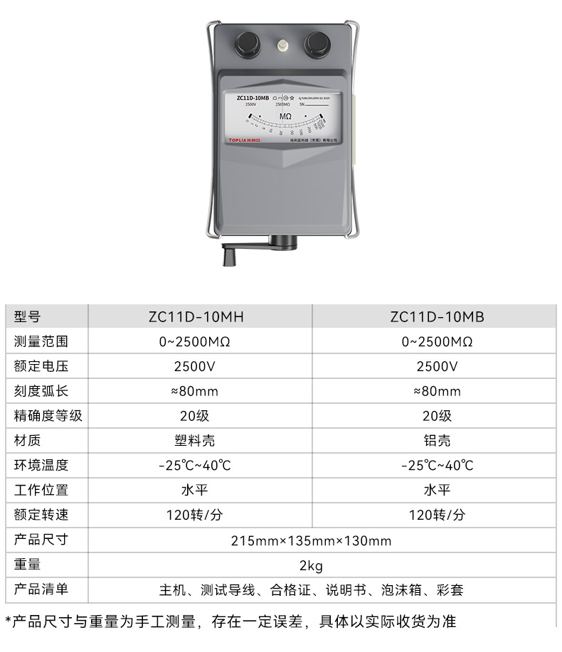 TOPLIA(拓利亚)绝缘电阻测试仪 (铝壳)ZC11D-10MB