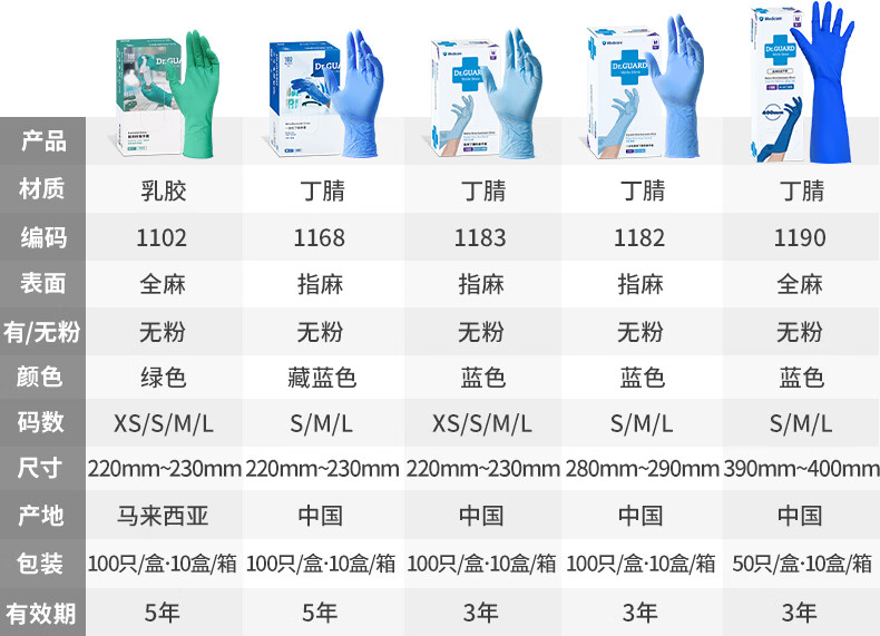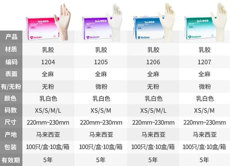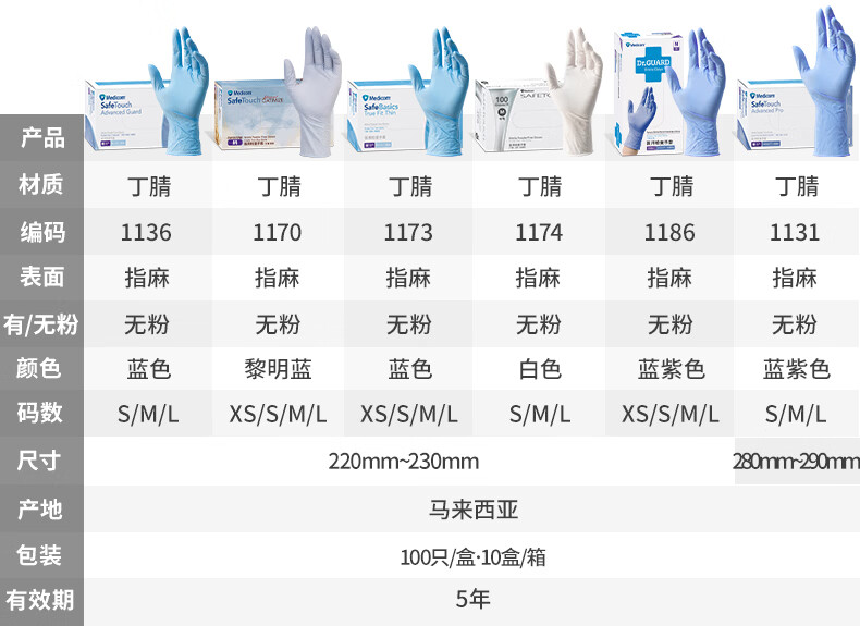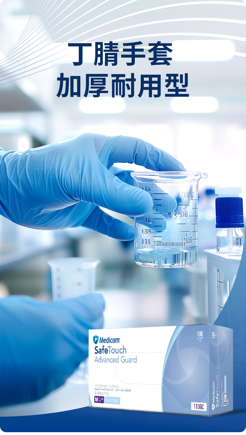 Medicom(麦迪康)一次性手套 蓝色丁腈手套100只/盒 #1173 特小号XS