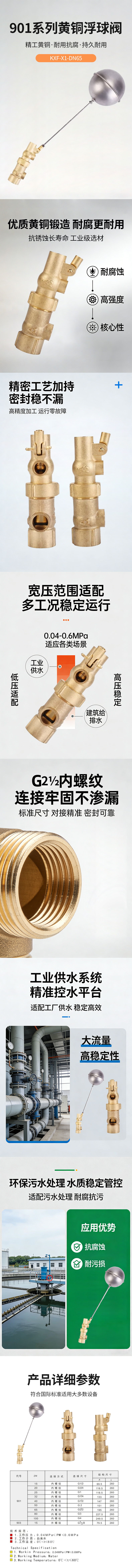 AMICO(埃美柯)901系列黄铜浮球阀 KXF-X1-DN65具有以下特点: