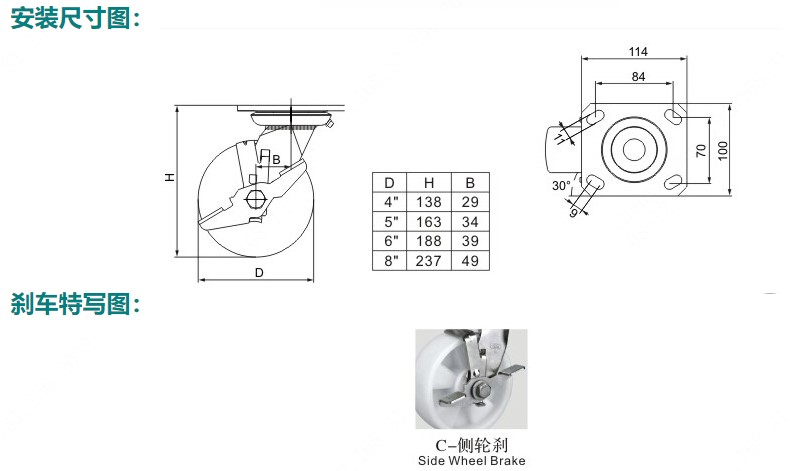 1 该脚轮采用304不锈钢材质制成,具有极高的耐腐蚀性和耐用性,适用于各种苛刻的工业环境。