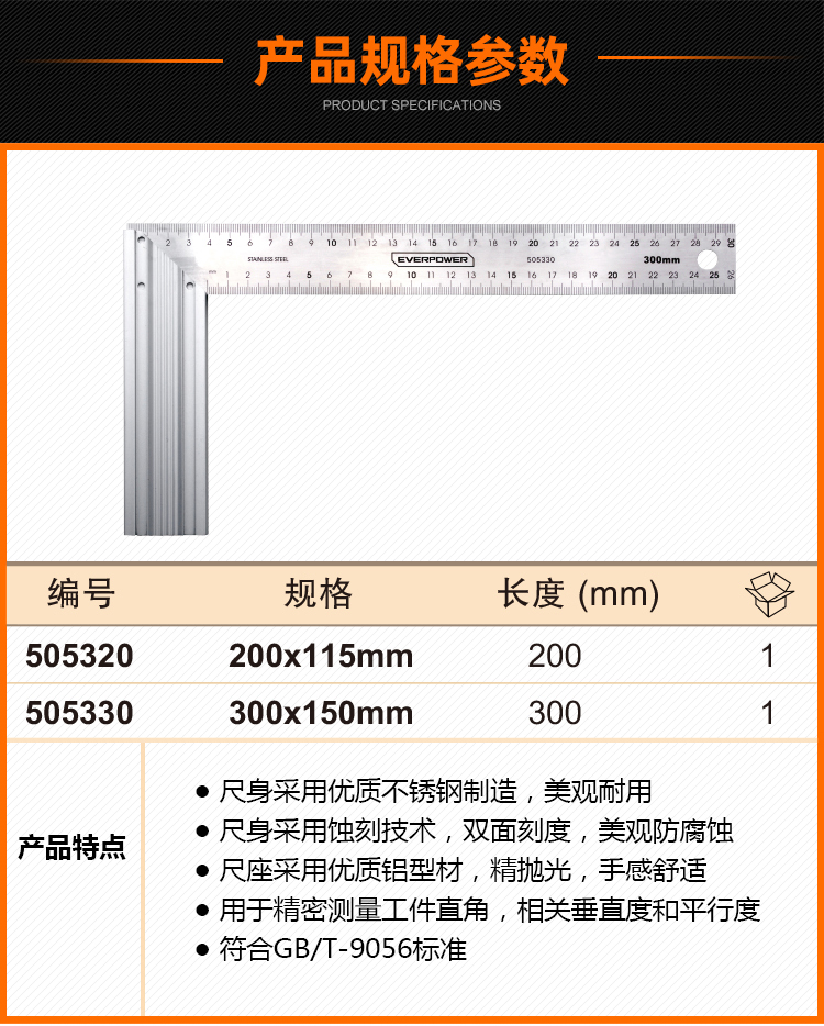 EVERPOWER(艾威博尔),铝型材角尺300×150mm,505330