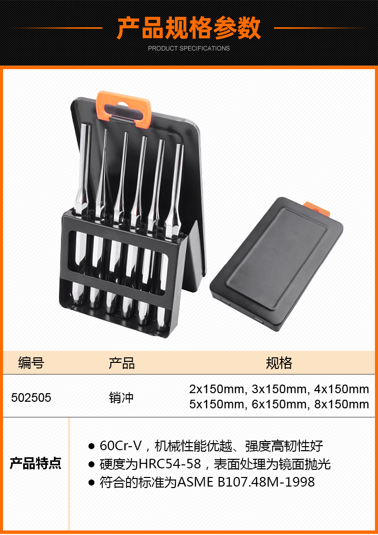 该6件套圆柱冲广泛应用于机械加工、模具制造、汽车维修、五金加工等行业。具体使用场景包括: