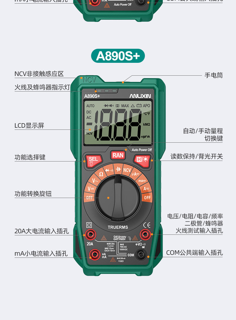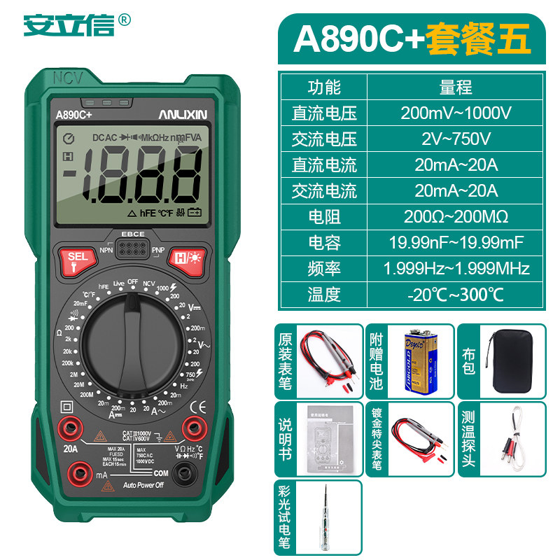 ANLIXIN(安立信) 智能防烧A890C+万用表(套餐五) ALX-A890C+5 含(布包+镀金特尖表笔+彩光试电笔)