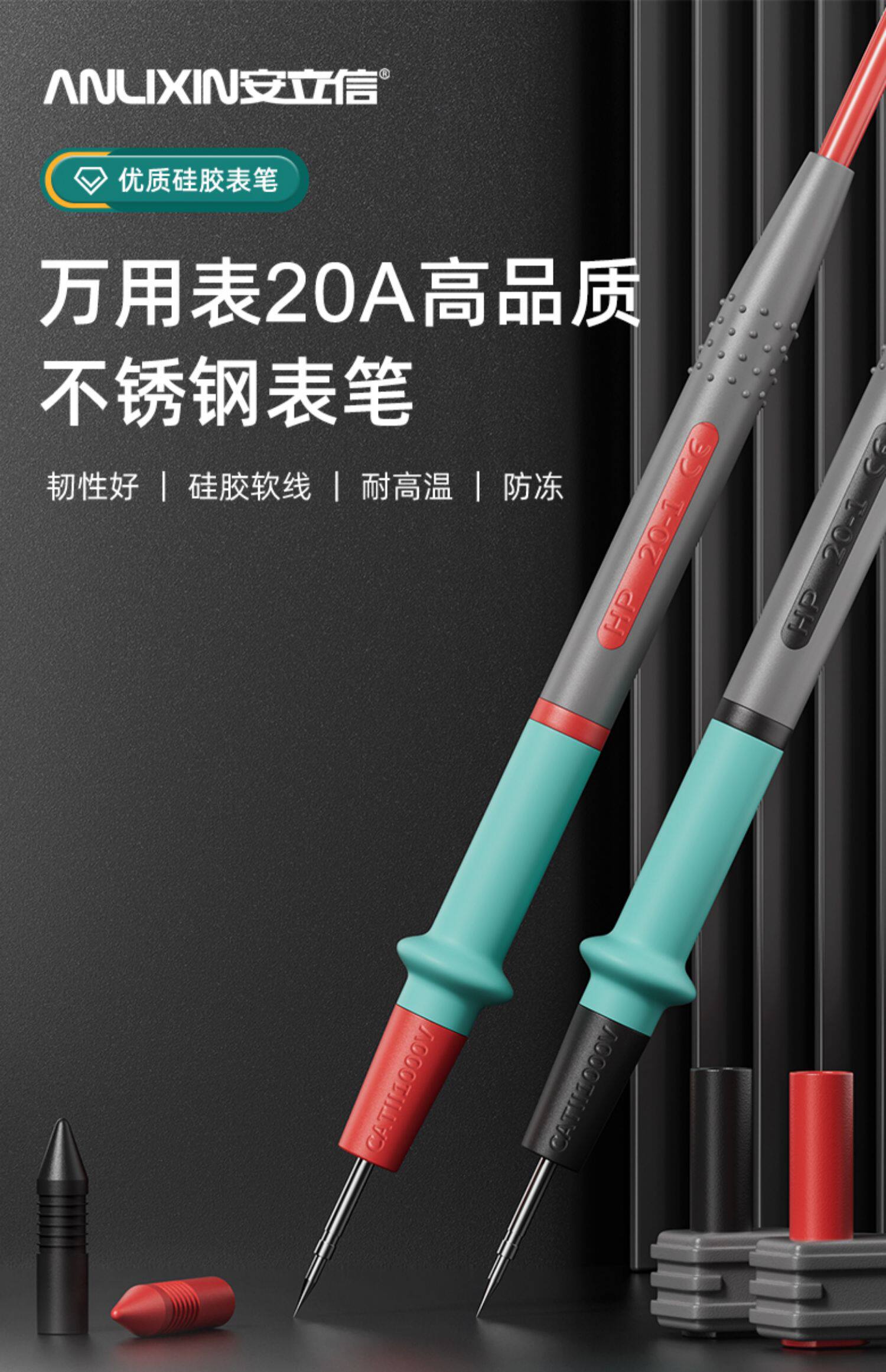 ANLIXIN(安立信) 不锈钢表笔(防冻硅胶线)+801红黑鳄鱼夹一对 ALX-BXG-BB-1
