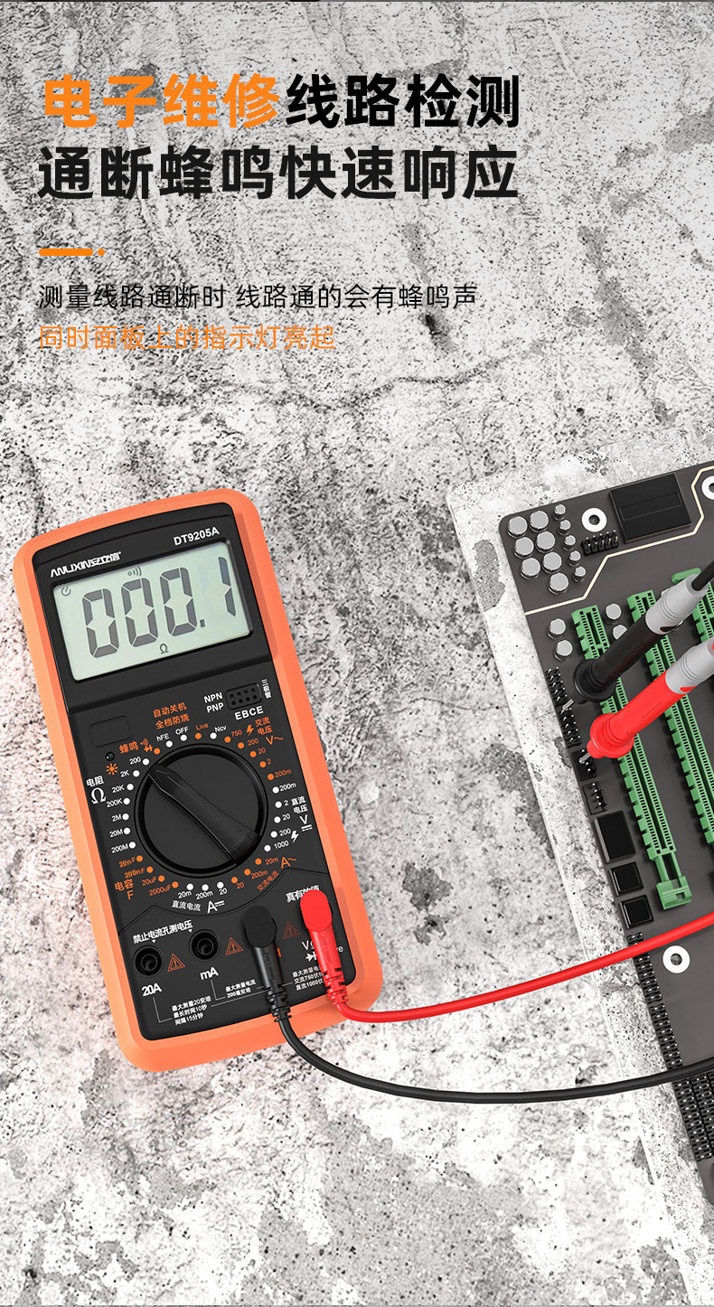 ANLIXIN(安立信) 多功能量程防烧万用表(DT9205A)套餐二 ALX-WYB-9205A-2 含镀金特尖表笔
