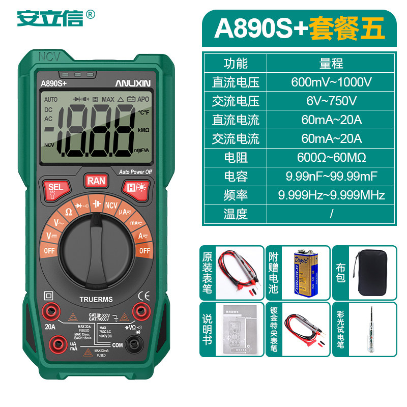 ANLIXIN(安立信) 智能防烧A890S+万用表(套餐五) ALX-A890S+5 含(布包+镀金特尖表笔+彩光试电笔)