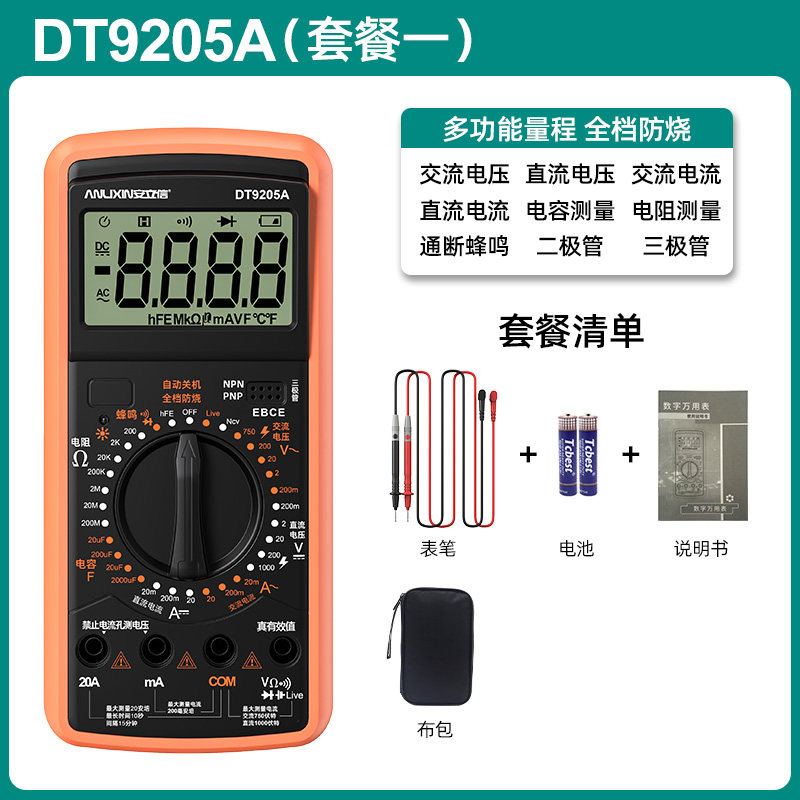 ANLIXIN(安立信) 多功能量程防烧万用表(DT9205A)套餐一 ALX-WYB-9205A-1 含布包