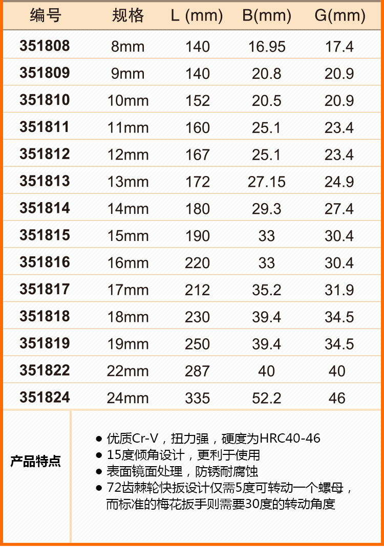 EVERPOWER(艾威博尔),镜面活动棘轮两用板手15mm,351815