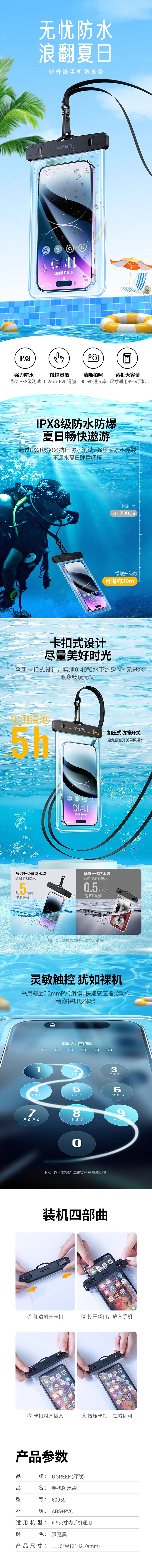 UGREEN(绿联)手机防水袋 黑色+透明 60959