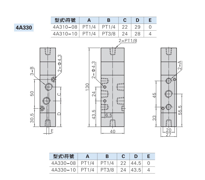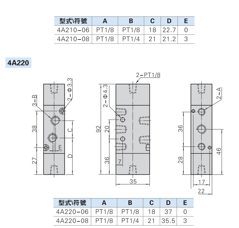 AIRTAC(亚德客) 4A200系列气控阀 4A230C-08