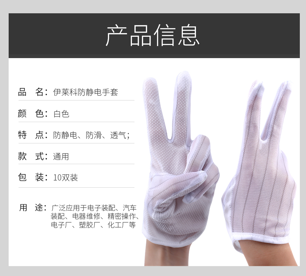伊莱科,{一整袋10副}防静电手套防滑颗粒手指加宽8块裁片,ET070003,6930246707767
