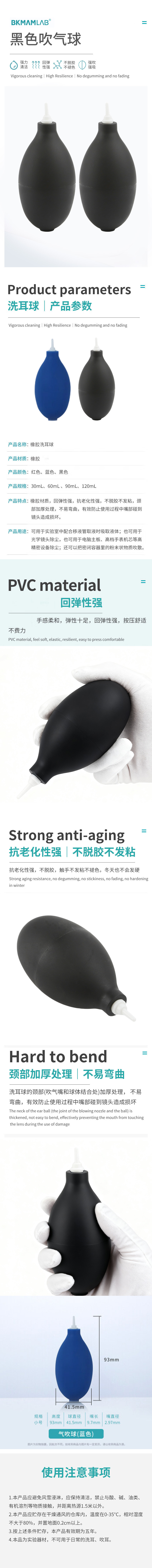 结构设计:颈部(吹嘴与球体结合处)加厚处理,坚固不易弯曲,有效防止使用时嘴部碰到镜头等精密部件,保护设备。
