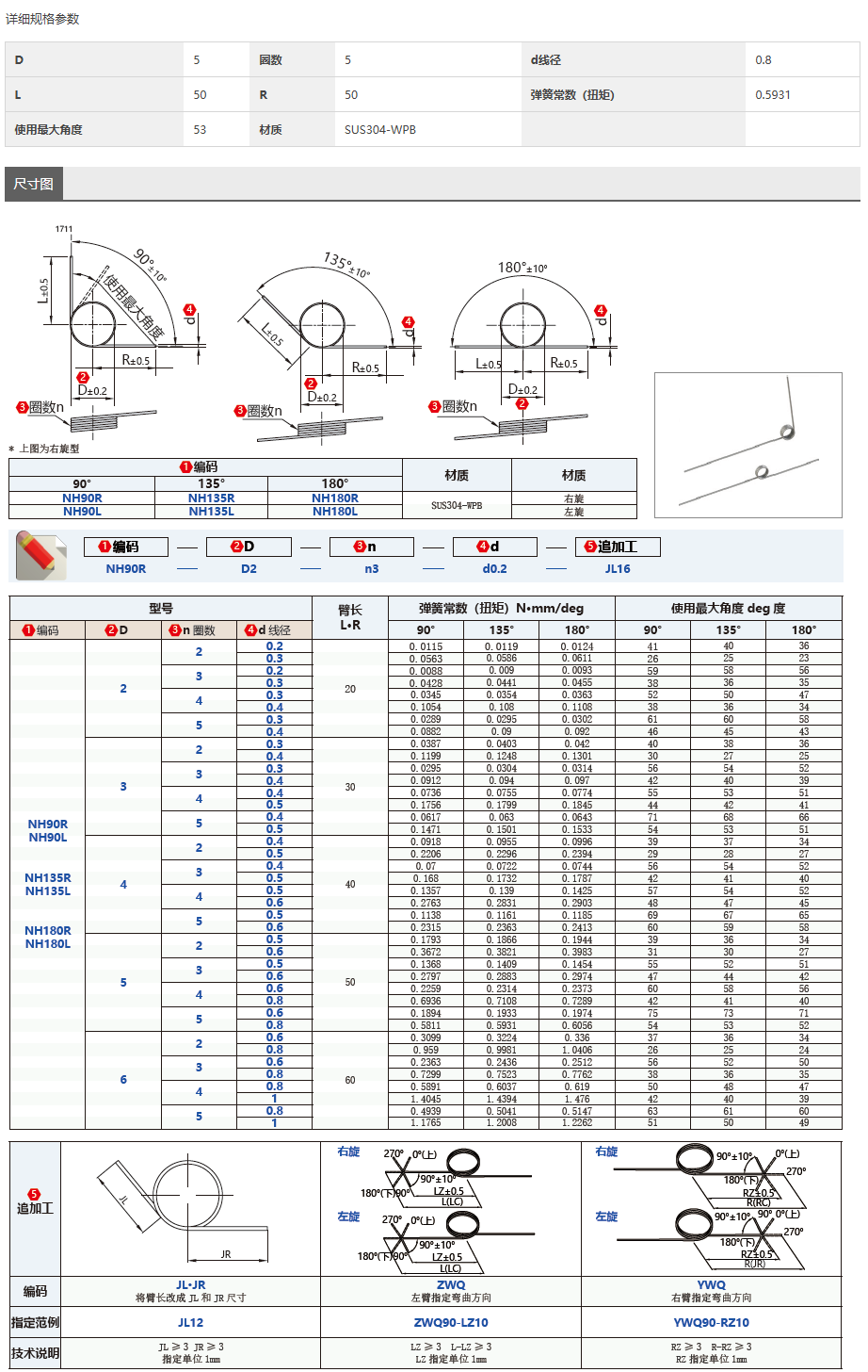 MYMOOO(螞蟻) 扭力弹簧 D5-n5-d0.8 右旋 135° 304不锈钢 袋装