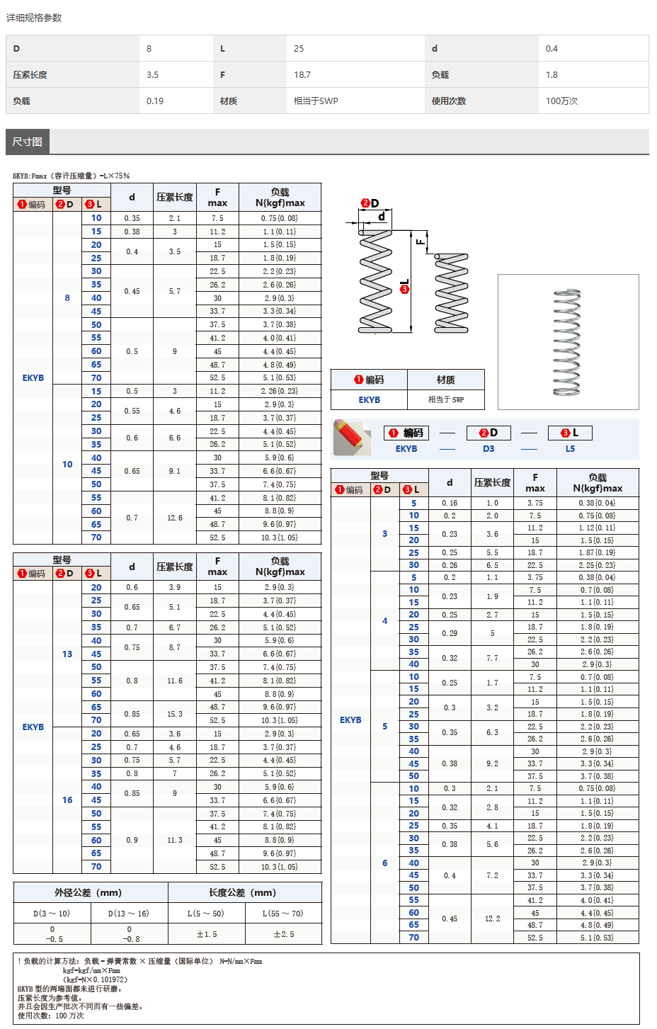 弹簧的压紧长度和负载参数经过精确计算,最大负载可达1.8kgf,满足不同应用场景的需求。