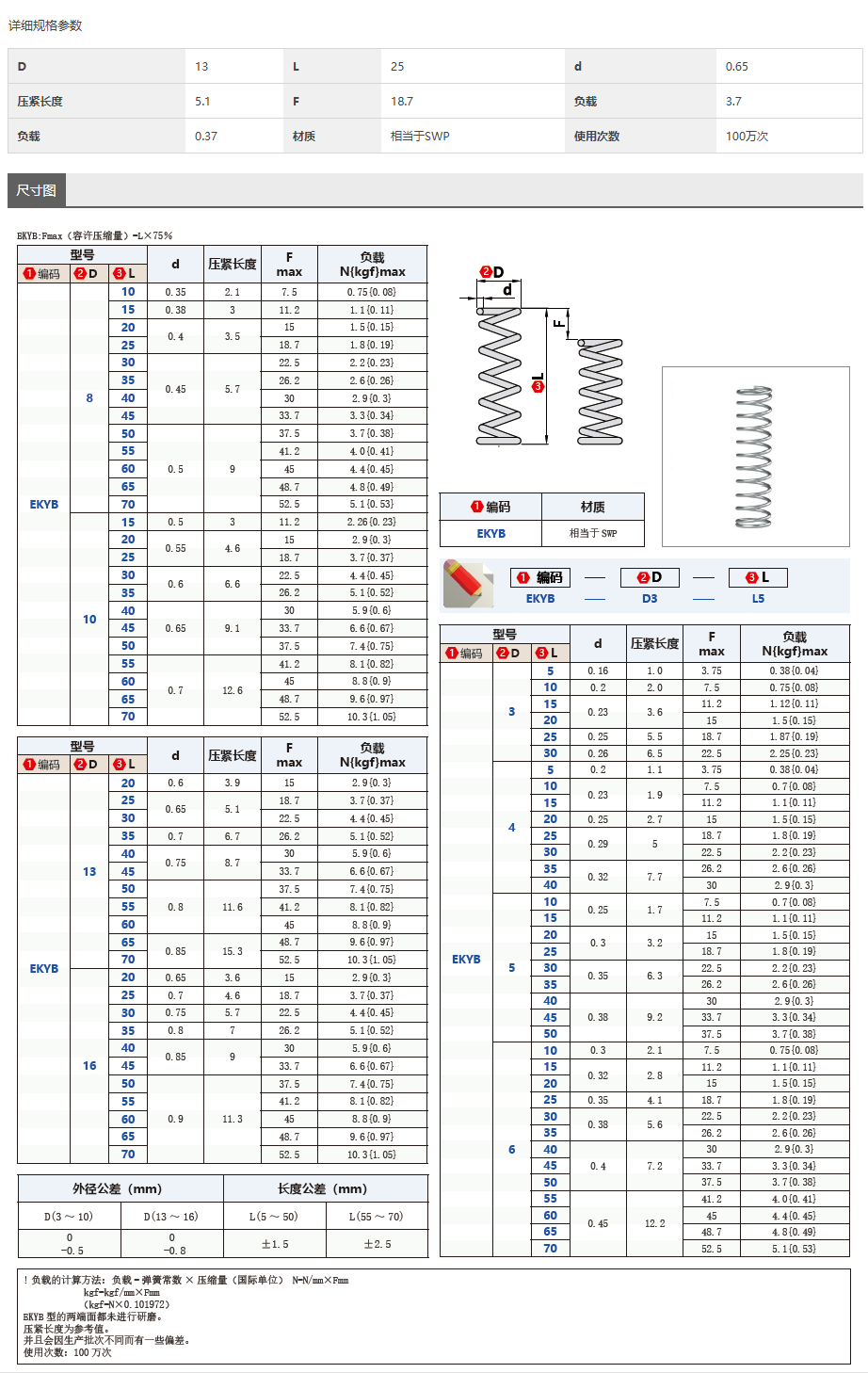 弹簧的压紧长度为5.1mm,最大负载力可达3.7kgf,满足不同应用场景下的力学需求。