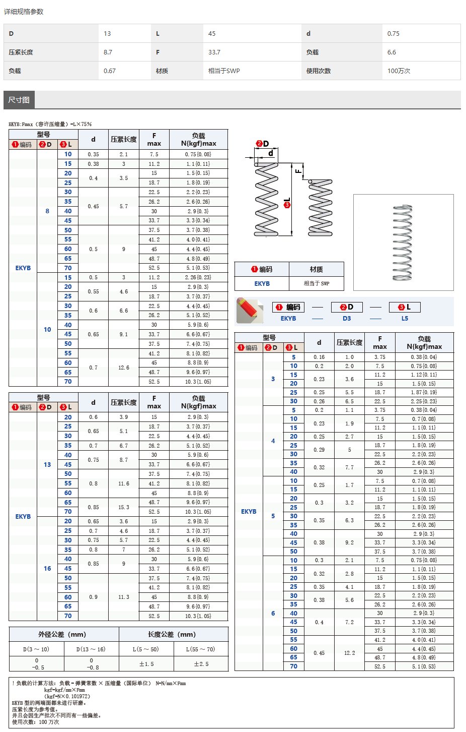 尺寸规格为13mmx45mmx13mmx0.75mm,适用于多种工业设备和机械装置,提供精确的弹力支持。