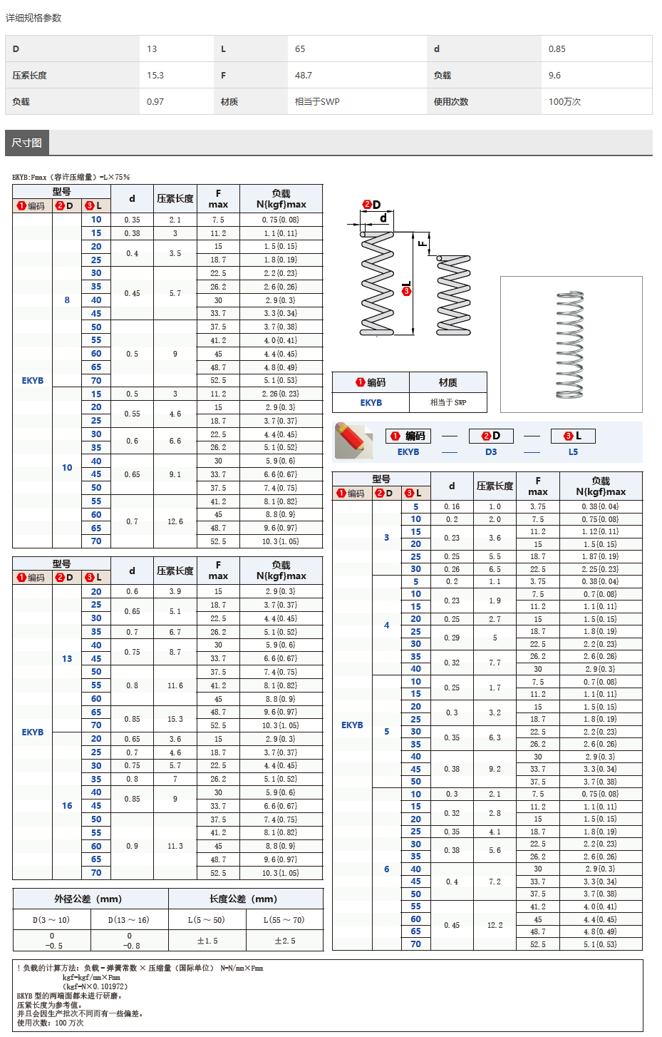 弹簧设计紧凑,压紧长度范围从15.3mm到48.7mm,负载能力从0.97kgf到9.6kgf,满足不同应用场景的需求。