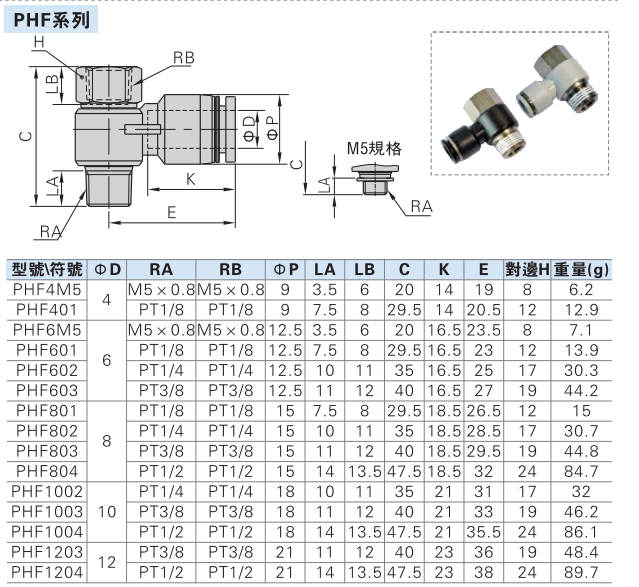 AIRTAC(亚德客) PHF系列串联肘节管接头 PHF1203