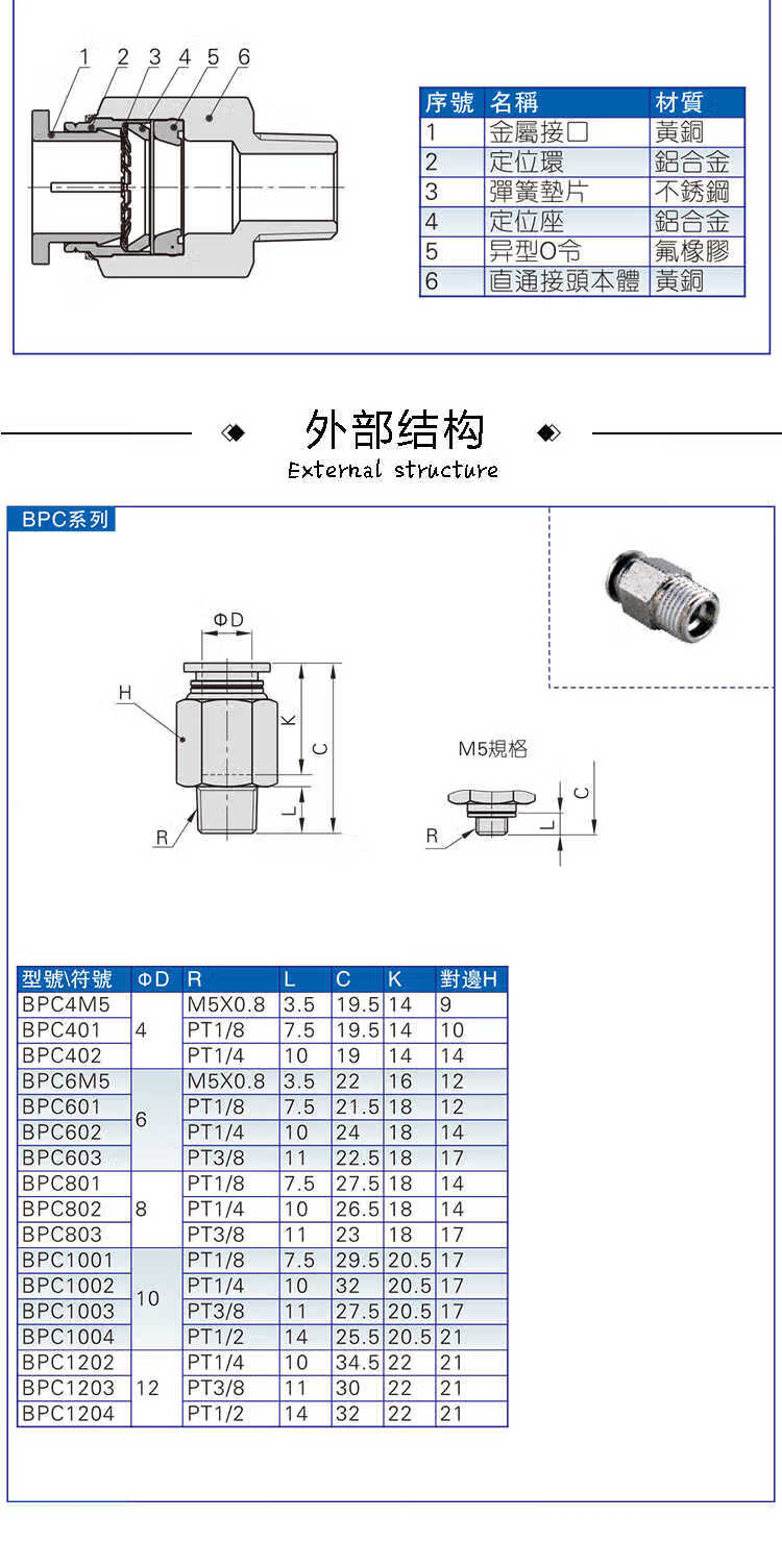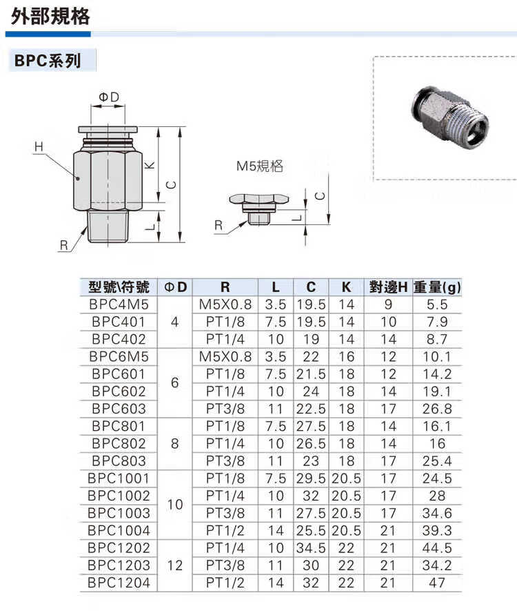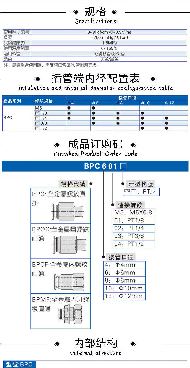 AIRTAC(亚德客) BPC系列全金属螺纹直通管接头 BPC1002具有以下特点: