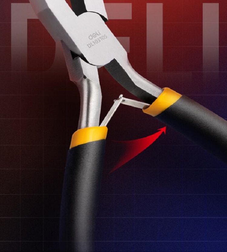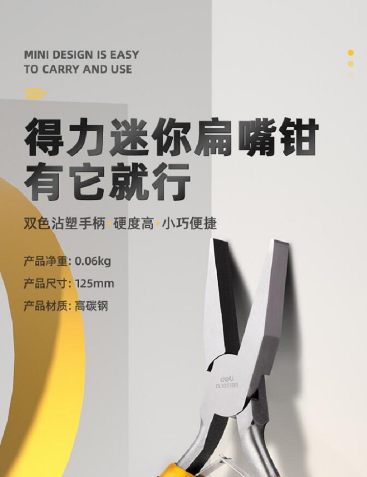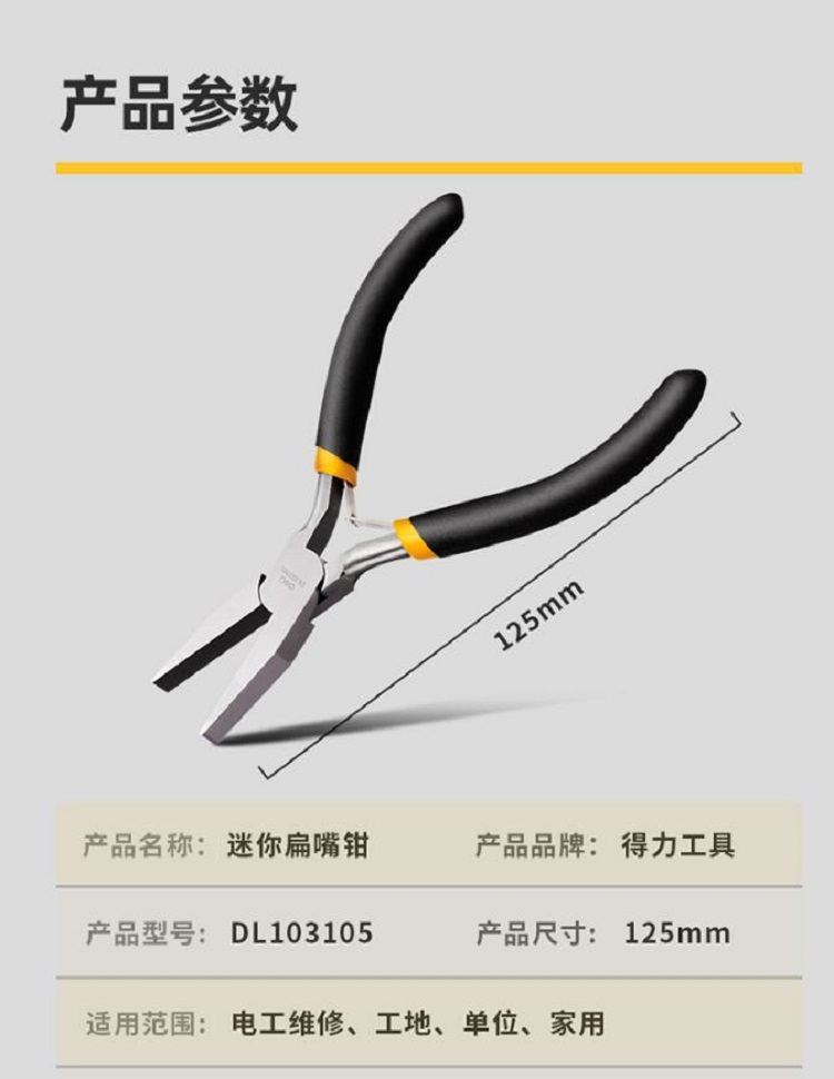 得力(deli )沾塑柄迷你扁嘴钳高碳钢夹持钳子5英寸