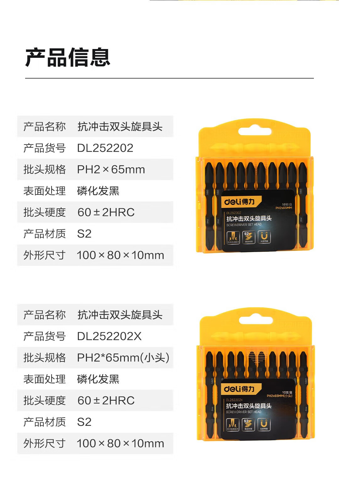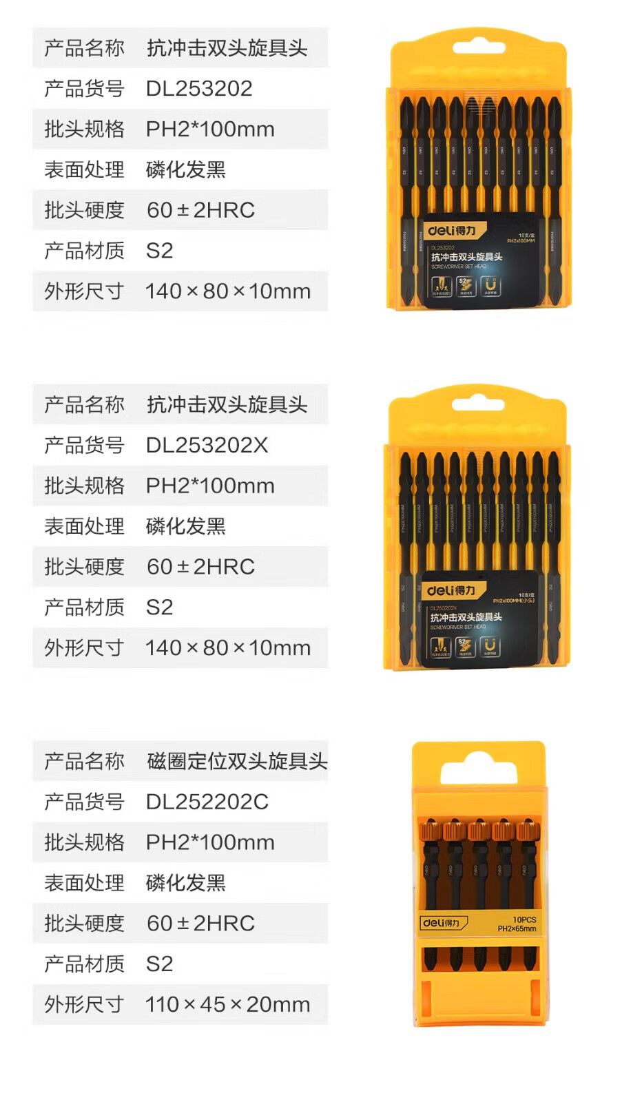 [1盒10个]得力(deli)抗冲击双头旋具头S2 PH2x100(小头)