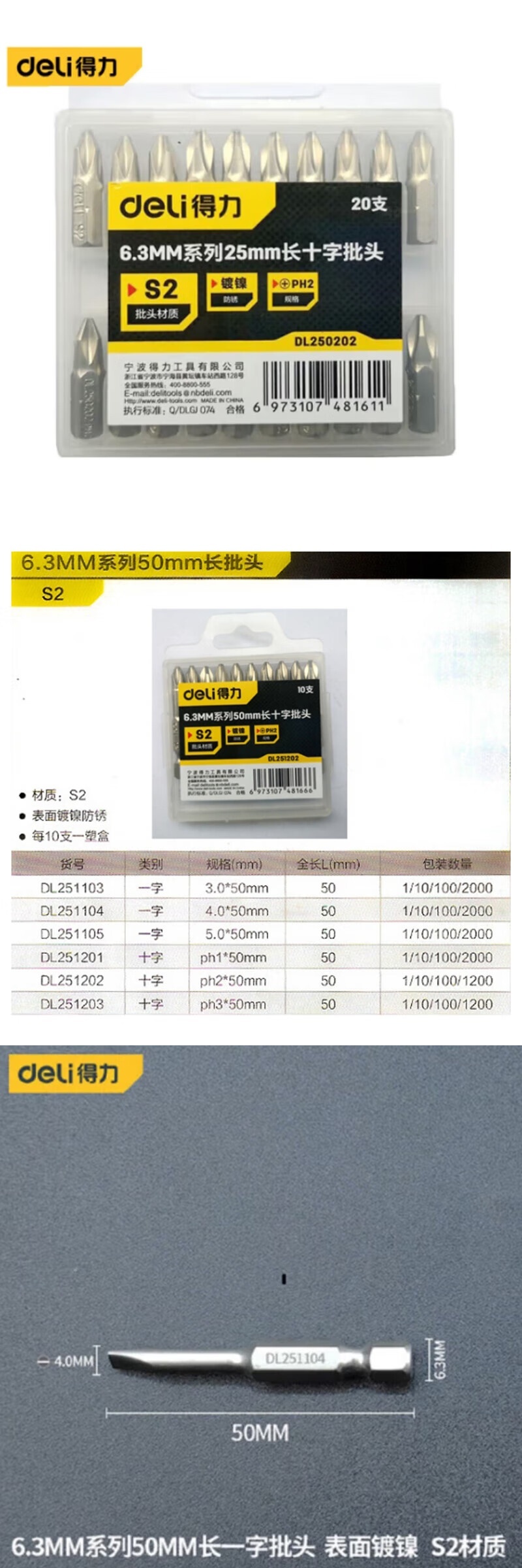 属于6.3MM系列工具配件,批头规格为4×50mm一字型
