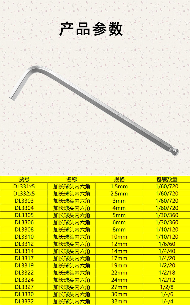 得力(deli) 特长球头内六角铬钒钢 32mm