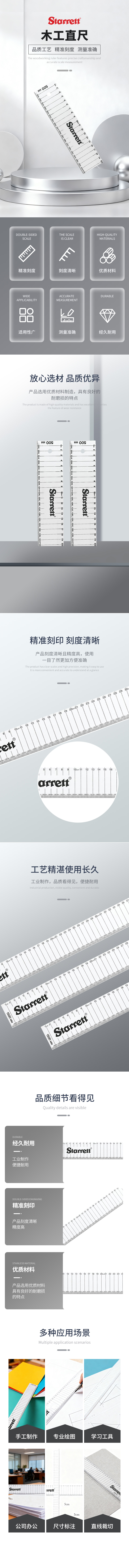 尺宽50mm(2英寸),两边均刻有cm和mm双刻度,满足不同单位测量需求