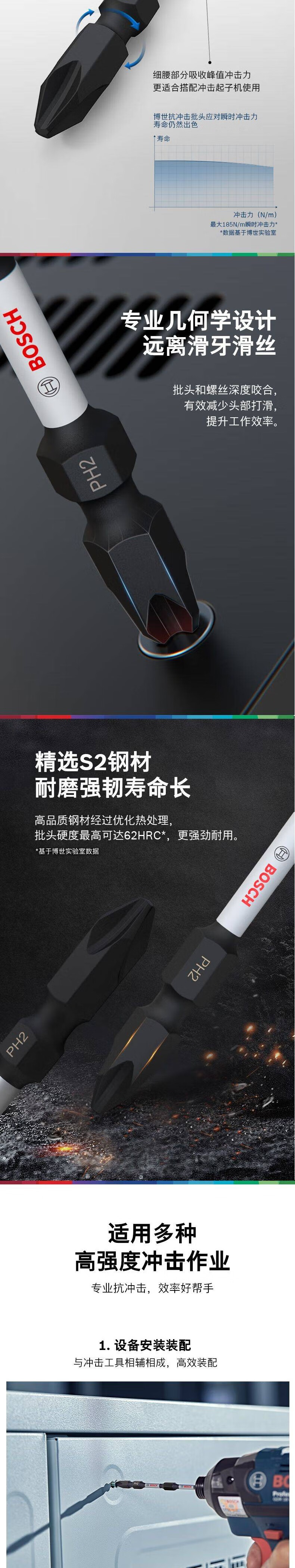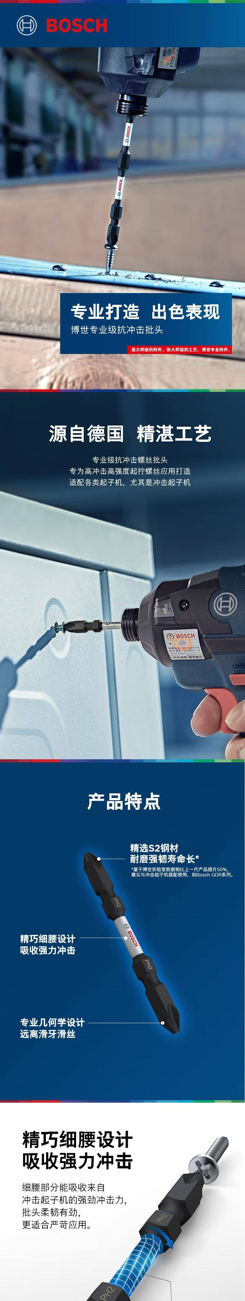 Bosch(博世),[一整袋2支]抗冲击螺丝批头PH2 ⌀6.35*150,2608522410