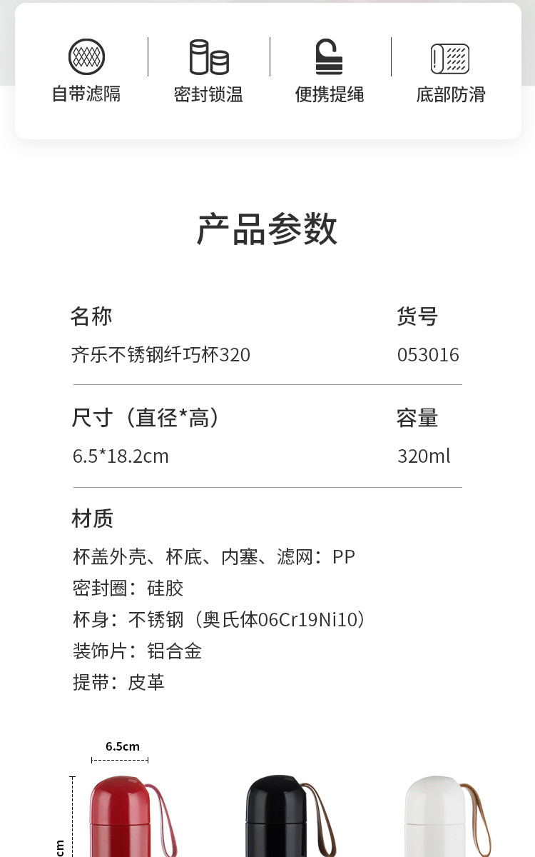 6 配备皮质提绳,触感舒适,质感高级,方便携带。