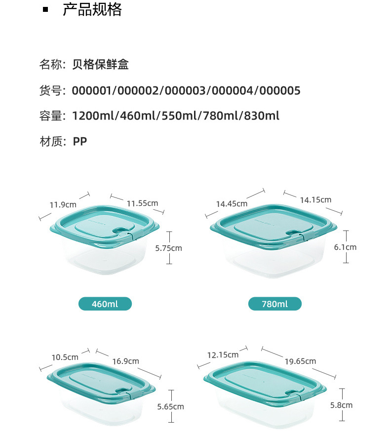 CHAHUA(茶花)贝格保鲜盒1200ML 000001
