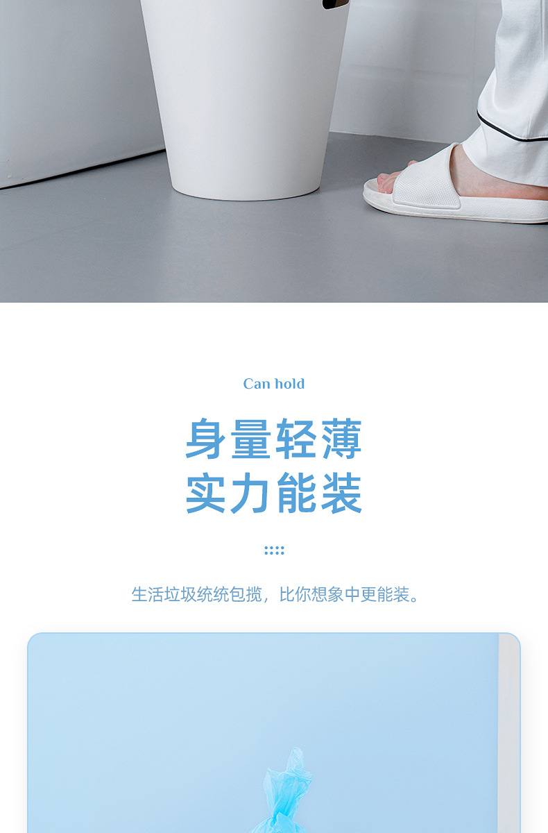 2 客厅和卧室:用于日常垃圾的收集,轻薄且结实的设计便于存放和搬运。