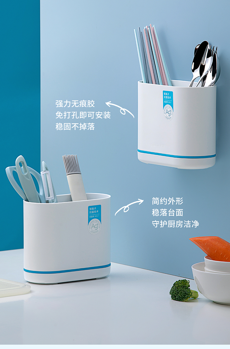 1 家庭厨房中,用于存放日常使用的筷子、刀叉、勺子等餐具,保持台面整洁。