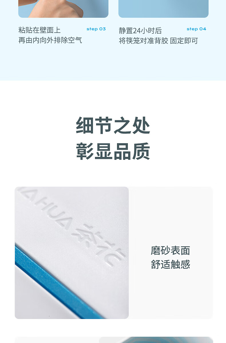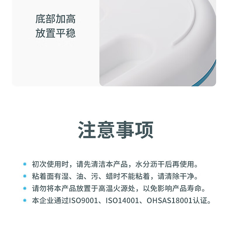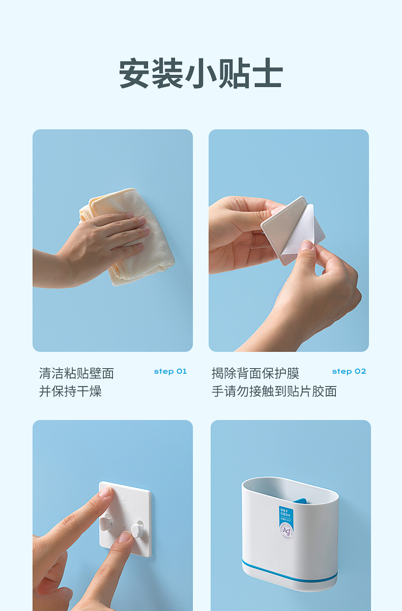 6 强力无痕胶安装,免打孔,稳固不掉落,便于清洁和维护。