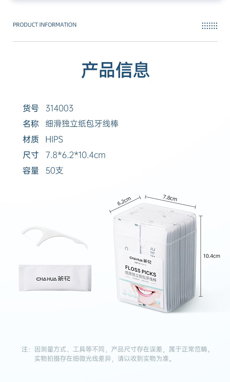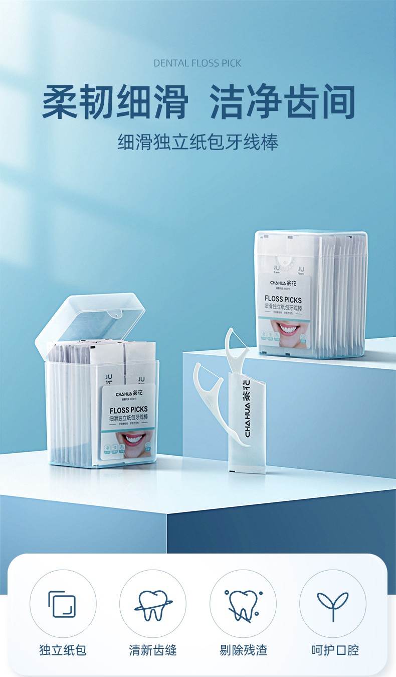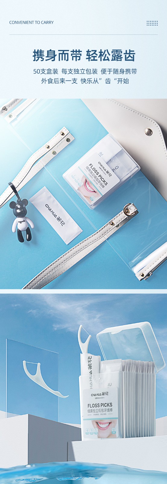 CHAHUA(茶花){一整袋50根}细滑独立纸袋牙线棒 314003