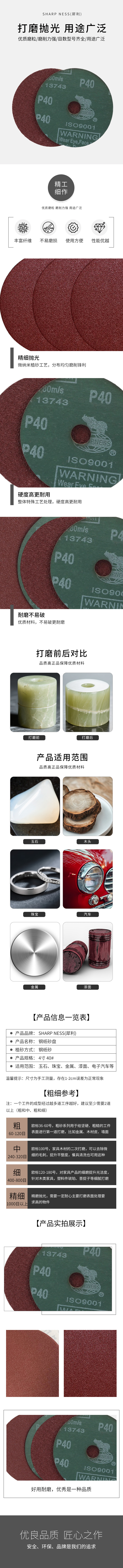 工艺精湛:运用微米植砂工艺,砂粒分布均匀,切削锋利,打磨效果精细;整体经特殊工艺处理,硬度高,耐用性强