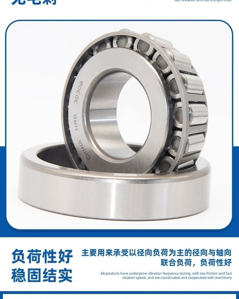 采用圆锥滚子结构,可同时承受径向载荷和单向轴向载荷,承载能力强
