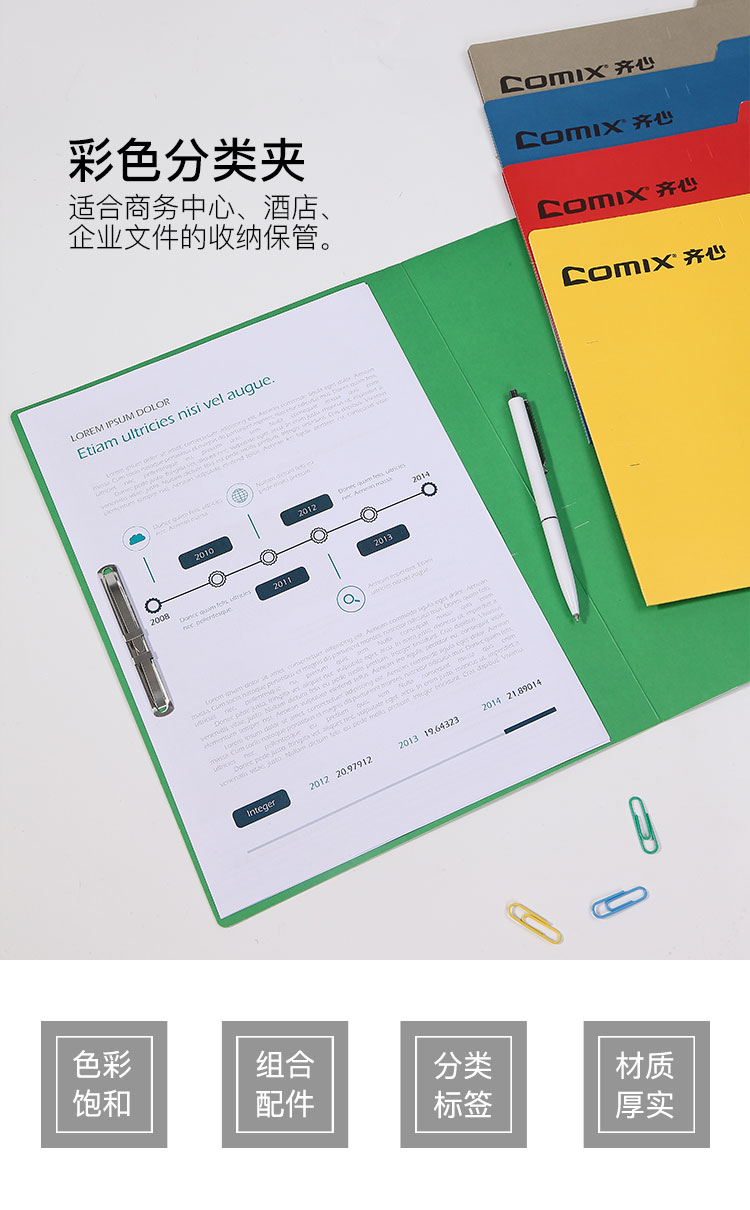 齐心(Comix)A1810 纸质文件分类夹 A4办公资料分类卡 纸质夹报告夹 绿色