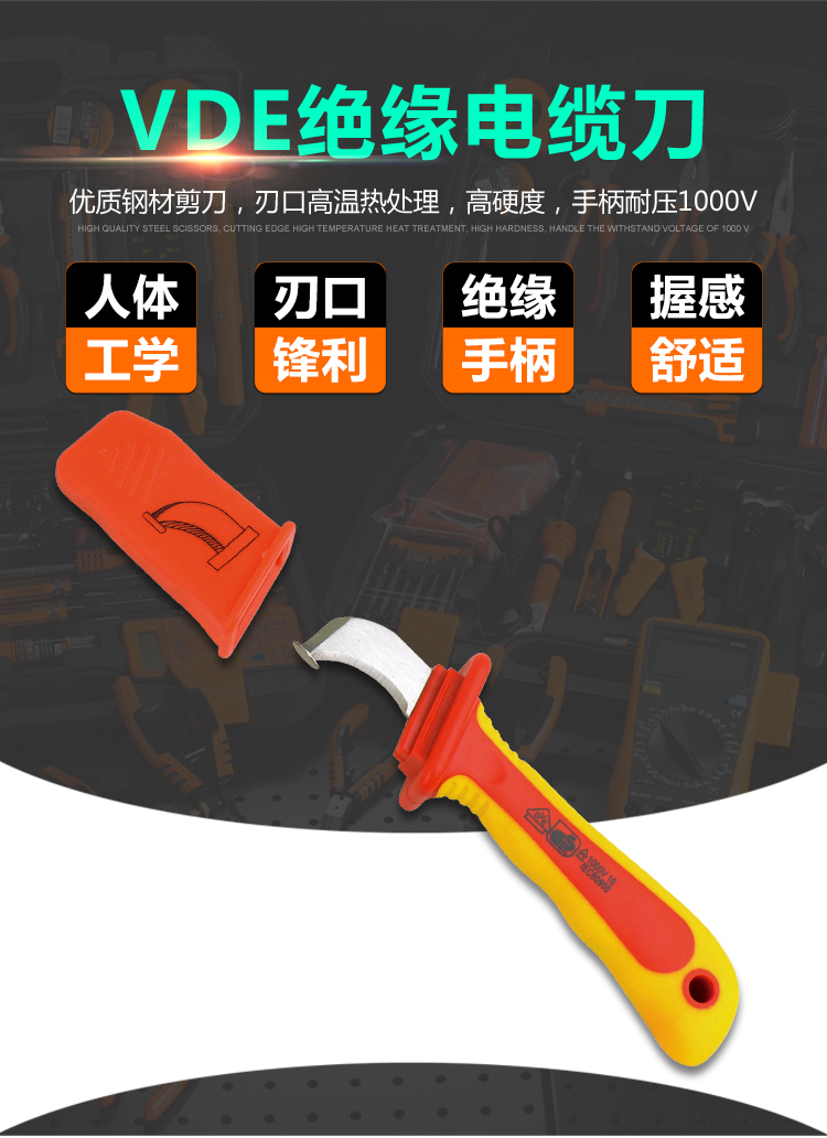 该电缆刀在不同工作条件下均表现出色,是专业电工和电缆操作人员的理想选择。