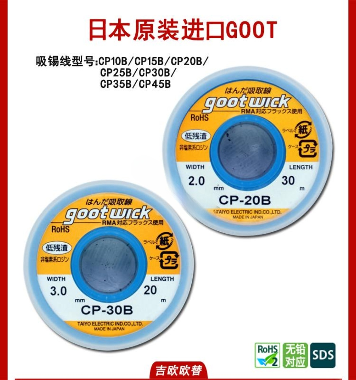 GOOT(吉欧欧替),吸锡线 线宽 3.0mm x20m,CP-30B