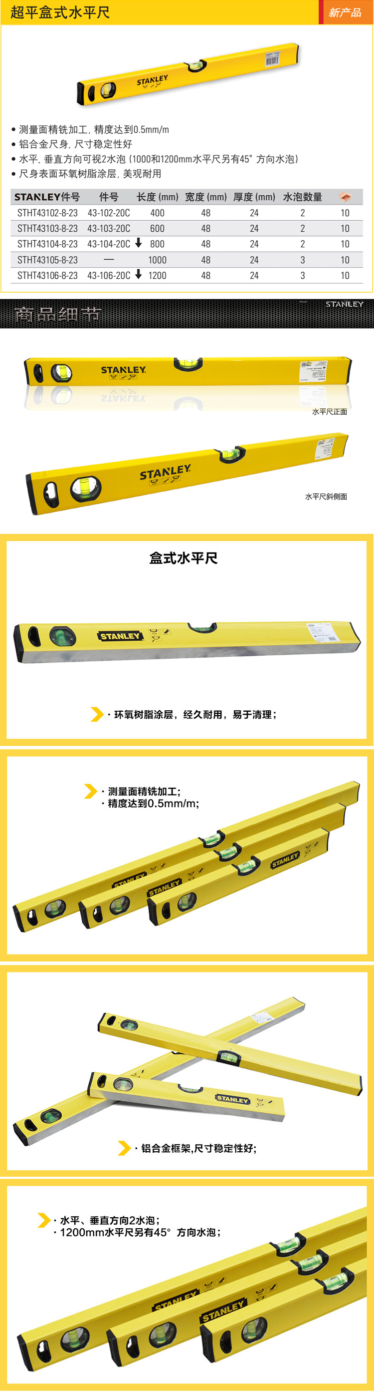 STANLEY(史丹利),超平盒式水平尺40cm,STHT43102-8-23